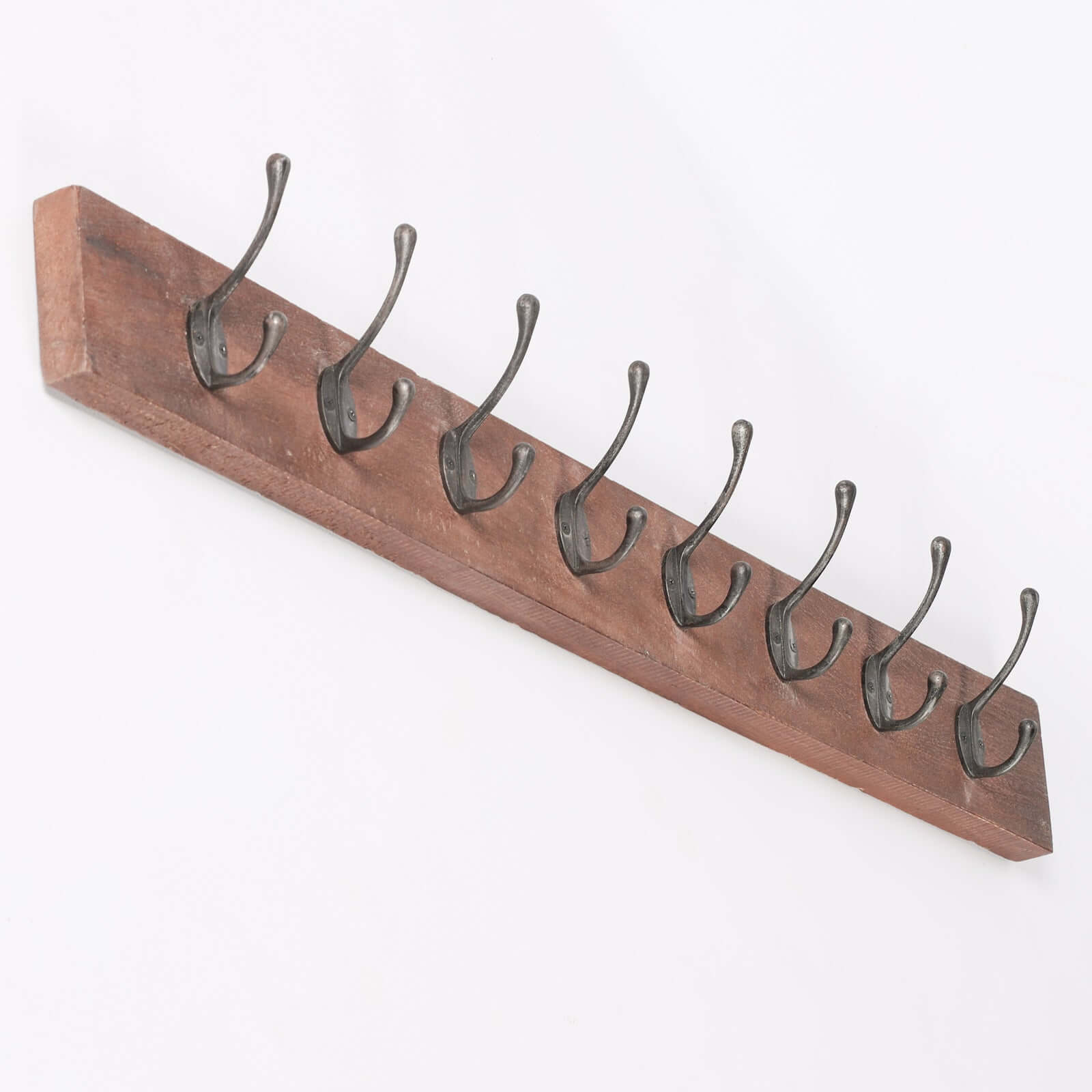 Large 8 Hook Wooden Coat Hanger With Cast Iron Hooks Rustic Style